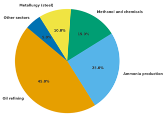 Figure 1. Distribution of hydrogen consumption by industry in the USA (2024)
