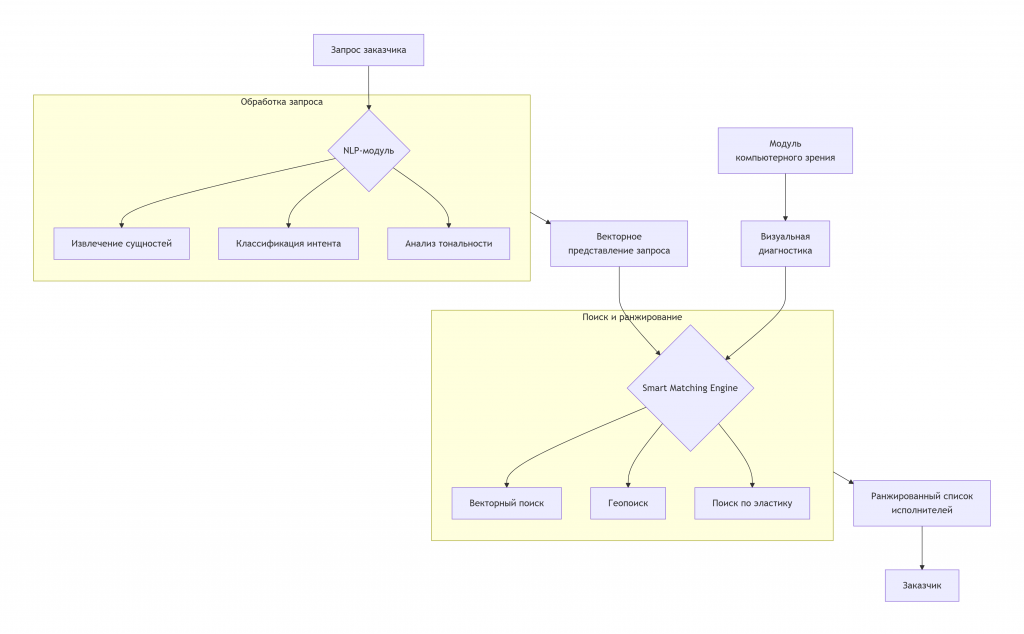 Современные платформы сервисных услуг сталкиваются с фундаментальной проблемой — невозможностью точного семантического сопоставления потребностей заказчиков и компетенций исполнителей средствами традиционных алгоритмов. Существующие подходы, основанные на ключевых словах и категориальных фильтрах, демонстрируют ограниченную эффективность в технических доменах, где точность формулировок и понимание контекста имеют критическое значение. Накопленный опыт эксплуатации подобных систем выявил устойчивую тенденцию к семантическому редукционизму, когда богатство естественно-языковых описаний сводится к ограниченному набору категорий и тегов, что неизбежно приводит к потере смысловых нюансов и контекстуальных особенностей.