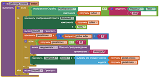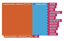 Для хранения списка предметов и отслеживания прогресса создаются две глобальные переменные: Предметы (список) и Индекс (число). При запуске экрана (Screen1.Initialize) список Предметы заполняется именами спрайтов в том виде, как они были названы, а переменная Индекс устанавливается в 1 (рисунок 3). Текст надписи Label устанавливается равным первому элементу списка, указывая игроку цель.